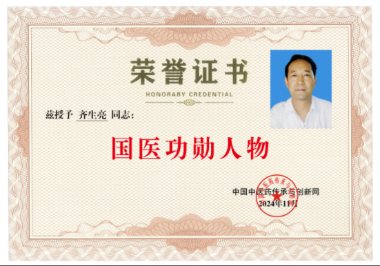 良医处世,不矜名,不记利,此其立德,此其立功也。齐生亮老师于这功在当代,利在千秋的中医传承行业中,从无怨言,不追名,不逐利。凡事都致力于做到尽善尽美,医所痊愈。他以“大医精诚”为格言,不断精益求精,将“传统中医文化开枝散叶满华夏”,影响着越来越多仁心博爱的年轻人和有志之士能以此为旗帜和榜样,在同一片蓝天和同一面旗帜下,传承好中国传统医术,惠万家幸福,助祖国强盛。他作为中医行业内领先人物,用新一代的传承人精神去诠释中医的精髓,去发扬中医的光辉去传播中医的智慧,守护人民健康。
