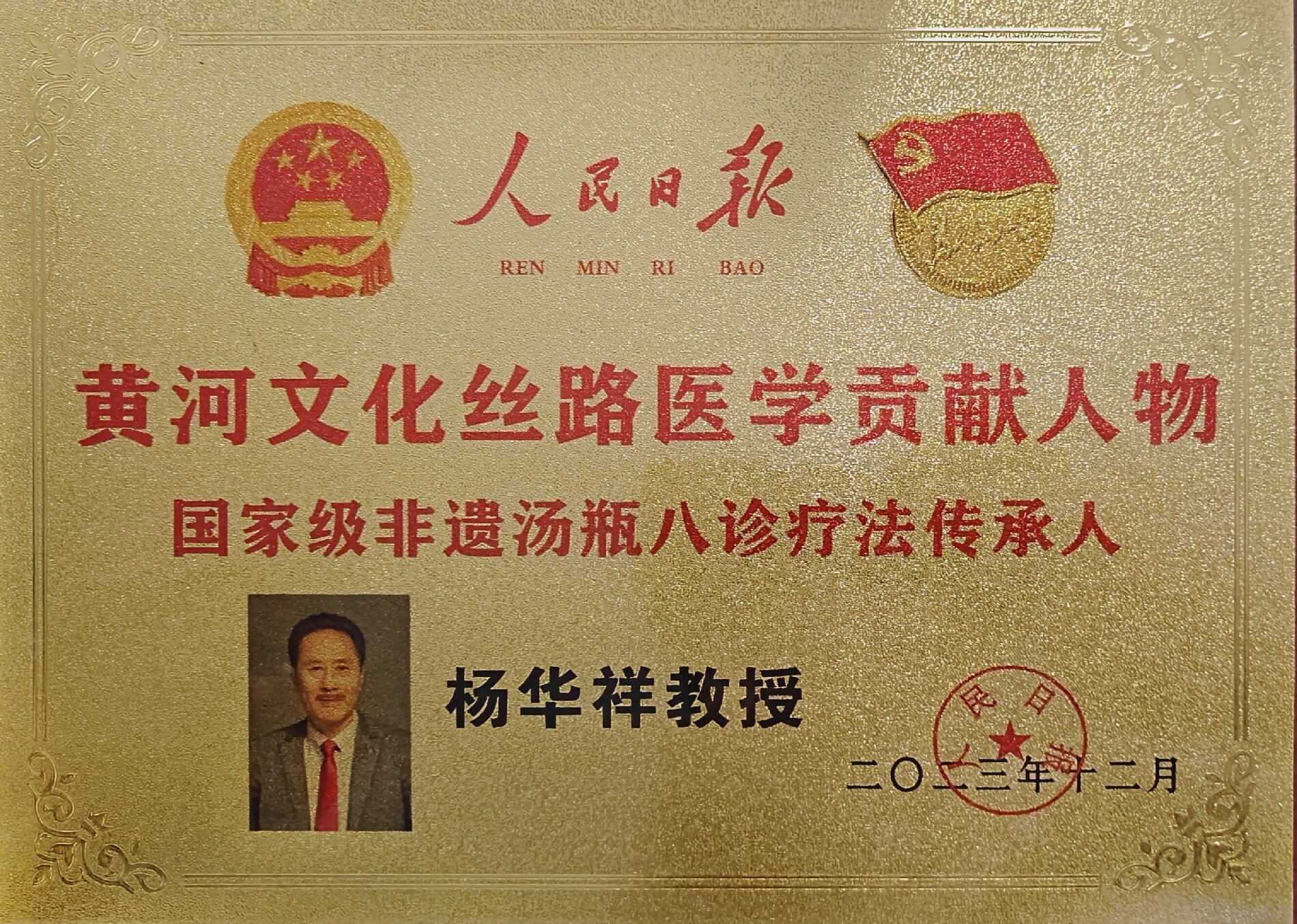 为让世界更了解华夏黄河文化,了解他的故乡宁夏,杨华祥教授以黄河文化古丝路医学汤瓶八诊为桥梁,几十年如一日充满着激情的在奋斗,他的努力和付出得到了社会各界的认同,被《人民日报》评为黄河文化丝路医学贡献人物,被《国家记忆人物大典》编委会评为“维护世界和平与安全基层功勋人物”,被中医传承新闻网评为“中国当代名中医”,中国专家智库网为他颁发了“建国75周年突出贡献专家”证书,中央组织部当代楷模人物报道组委会为他颁发了“中国新时代国医名师”证书。马来西亚和宁夏媒体亲切地称他为“民间大使”;他注重人才的培养与文化的传承,依托宁夏医科大学汤瓶八诊职业培训学院,为社会培育出优秀技术人才,并把汤瓶八诊这个国粹通过“一带一路”遍及全国,走向世界。他始终不忘党和人民的培养之恩,为人类的健康事业奋斗终身是他一生的夙愿!他就是我们今天要走进的建国75周年杰出贡献人物:“一带一路”民间大使、国家级非物质文化遗产汤瓶八诊疗法传承人杨华祥教授。