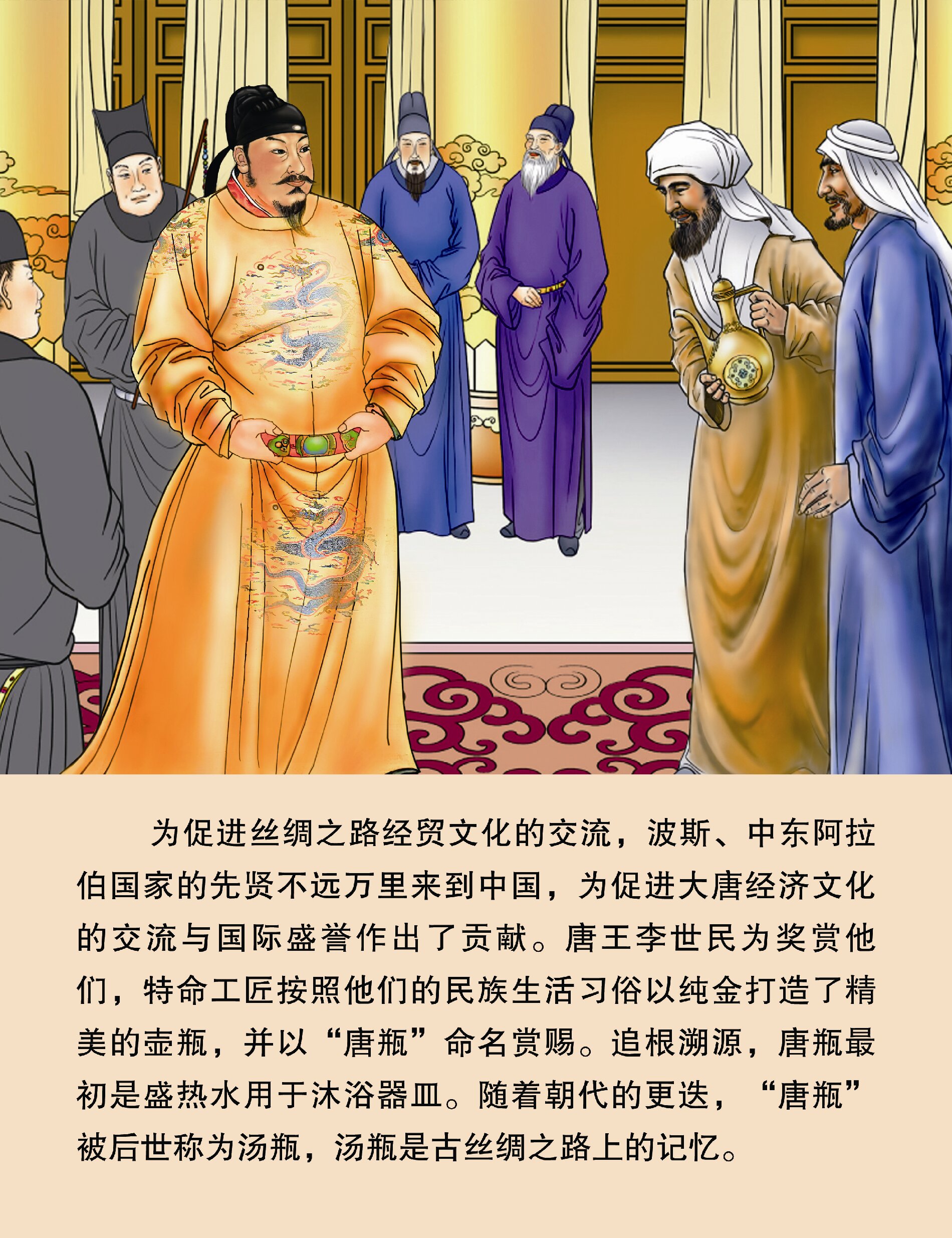 “汤瓶八诊疗法”的由来可追溯到唐朝。“汤瓶”,作为历史的记忆符号,在唐朝,被称为“唐瓶”。据载,盛唐时期,唐朝开国皇帝李世民为了感谢来自古丝绸之路的商贾与学者,为促进丝绸之路经贸文化交流作出的贡献,按照宾客的民族传统习俗,用纯金打造了精致的器皿予以相赠。当时,称此器皿为“唐瓶”。后来,被民间大量仿制使用。“唐瓶”为盛热水之物,随着朝代更迭,时代变迁,不再适合以“唐”命名。追根溯源,因古代将洗浴用的热水称为 “汤“,故将“唐瓶”易名“汤瓶”。以“汤瓶八诊”命名,是对古丝绸之路文化交流的一种记忆与传承。