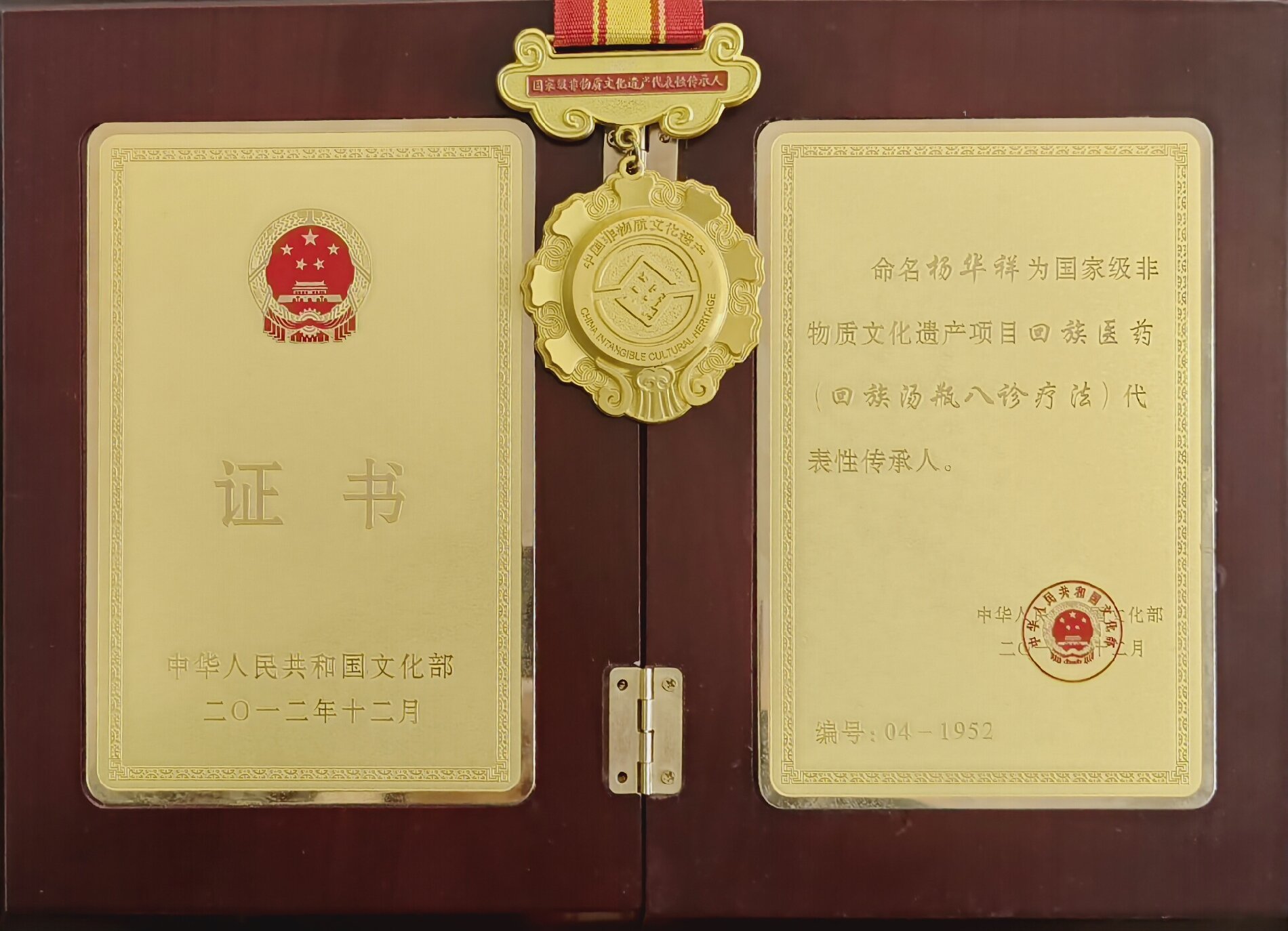 2008年,汤瓶八诊疗法被国务院、文化部列入国家级非物质文化遗产名录。杨华祥教授作为汤瓶八诊疗法杨氏家族第七代嫡系传承人被列为国家级传承人。