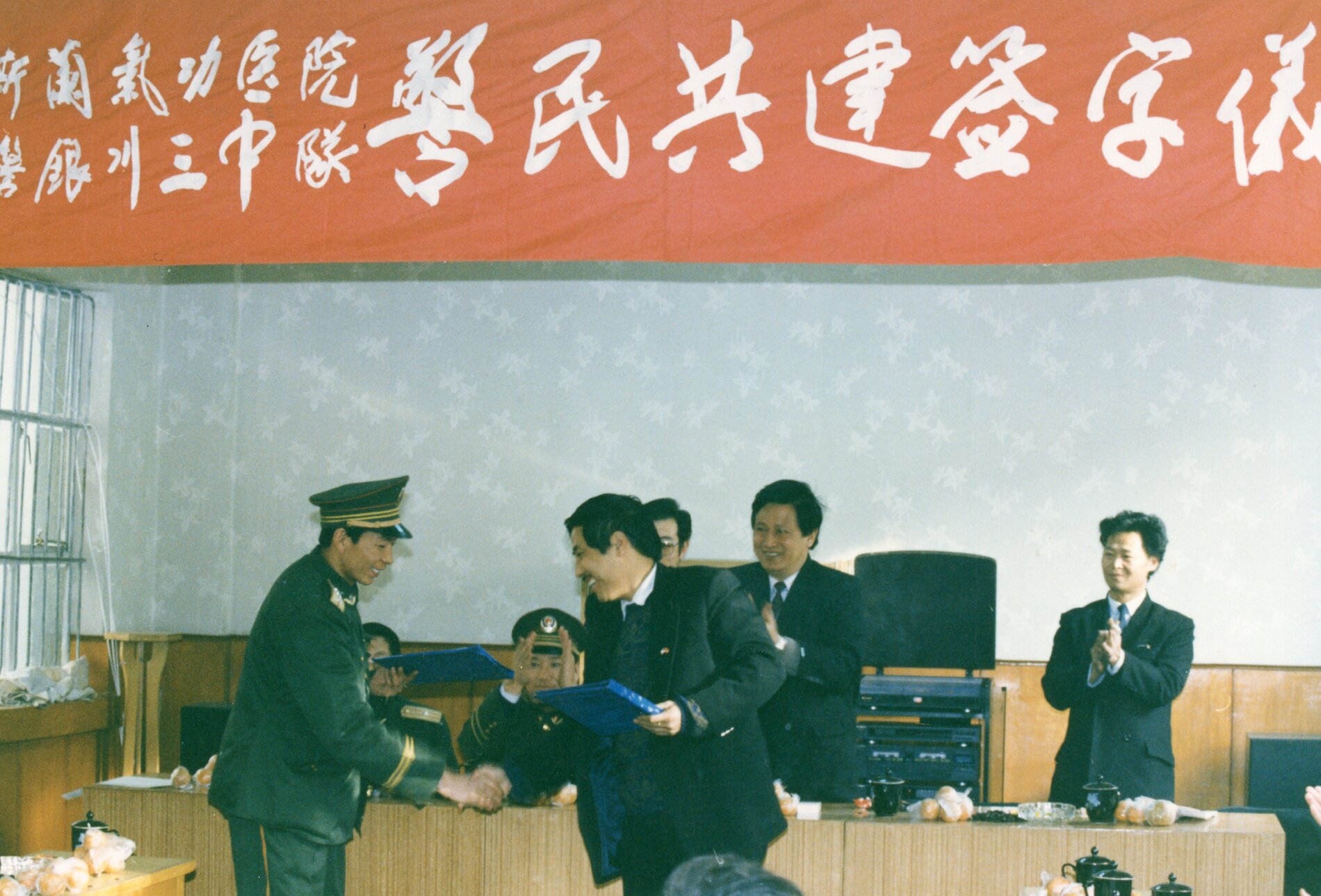 1987年,杨华祥应邀出任宁夏武警总队特警队武术教官举办的警民共建签字仪式