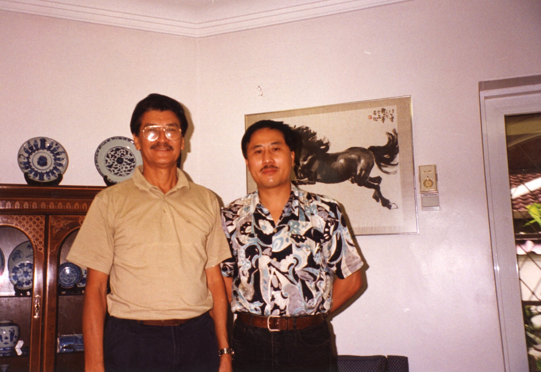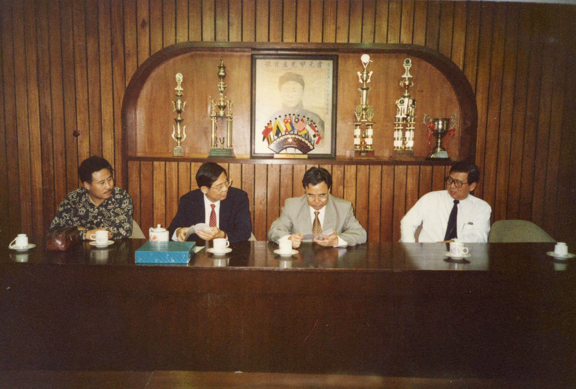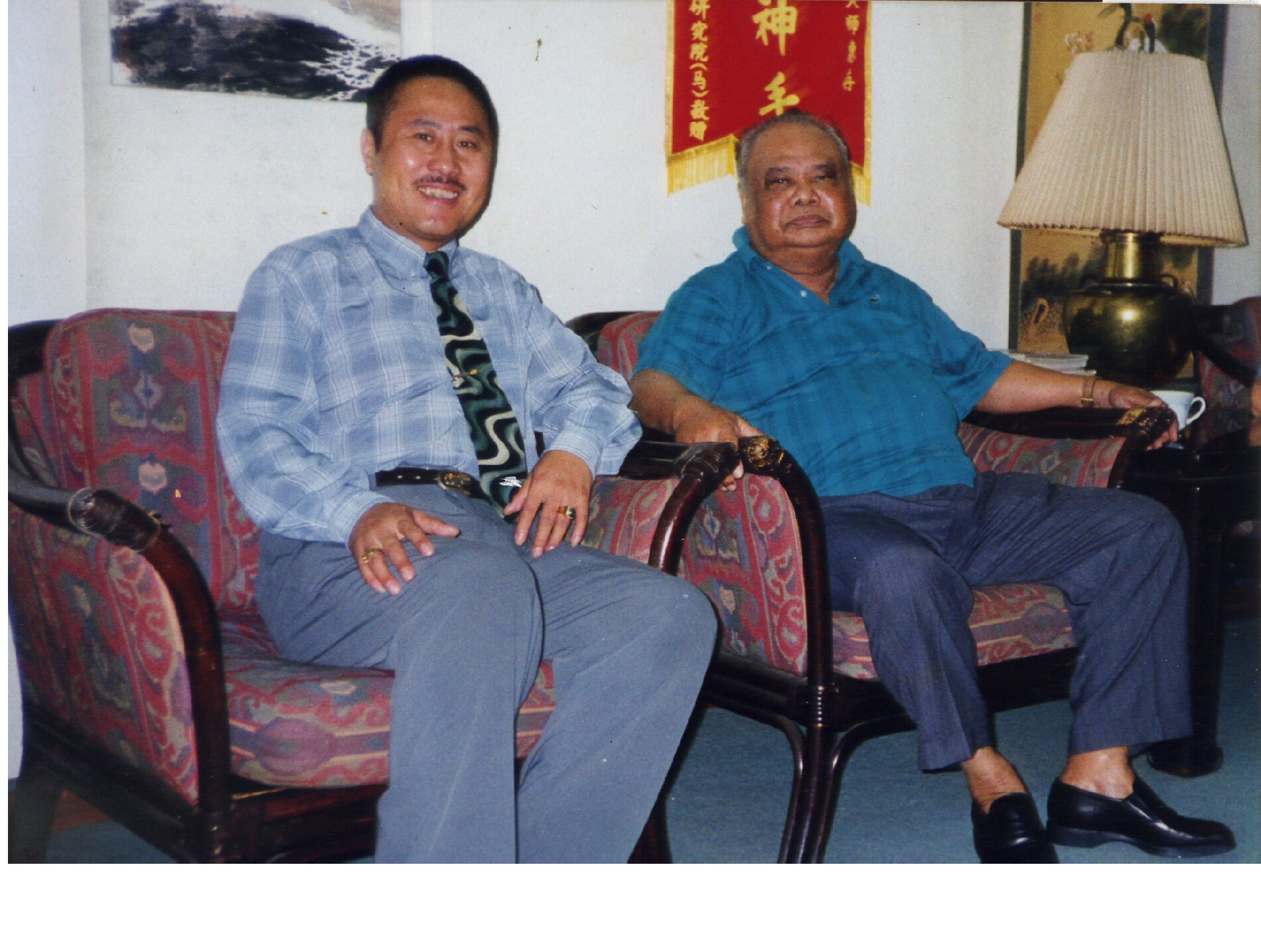 1993年,时任马来西亚中华汤瓶文化研究院院长杨华祥在吉隆坡接待中国台湾汤瓶气功协会会长邱森源