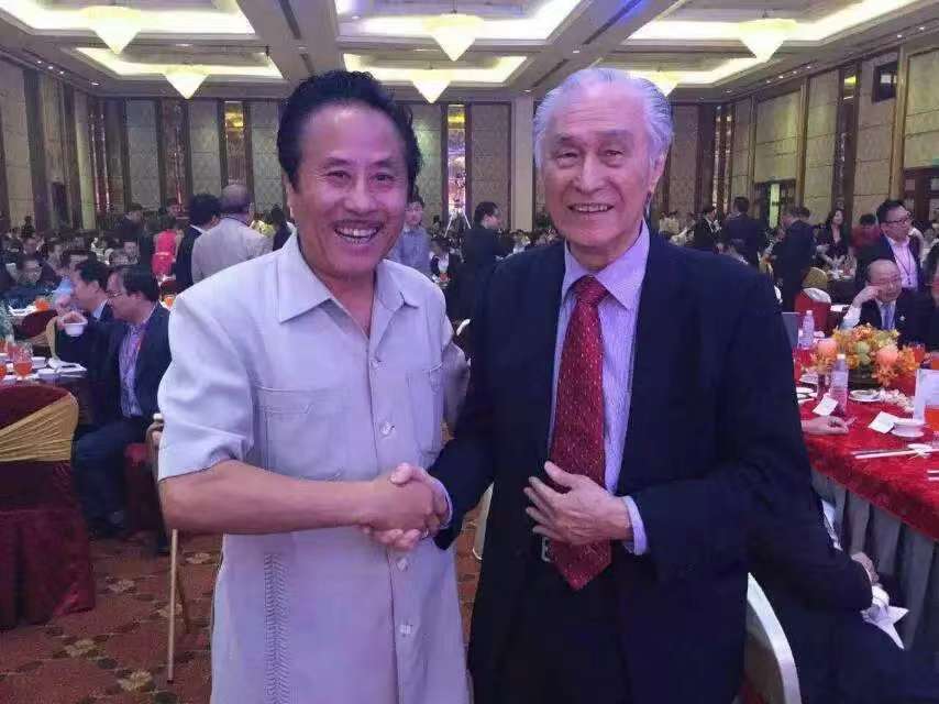 杨华祥被称为“世博之父”的世界华商联合会总会长蒋一成进行健康调理,愈后合影