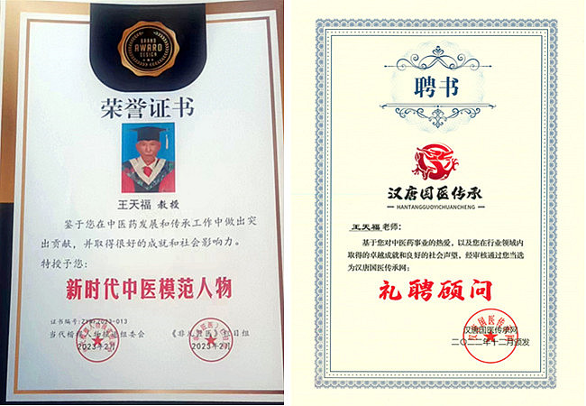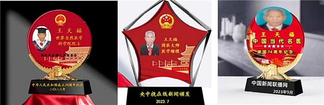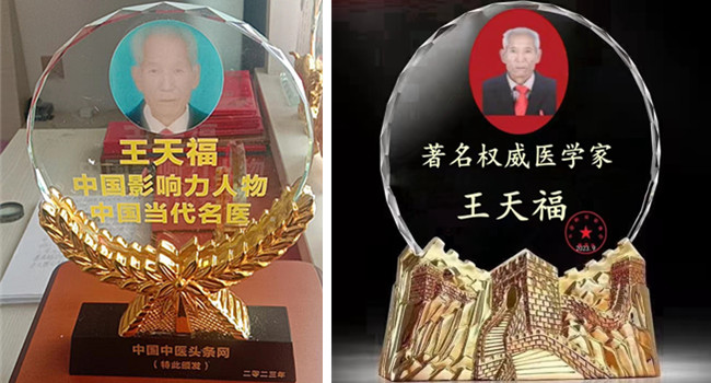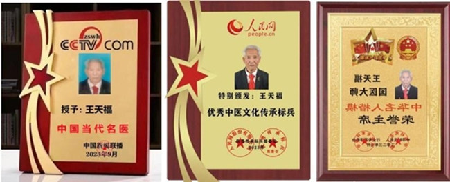 王天福刻苦钻研、博采众长、秉持医者仁心理念,运用精湛技术,为患者送去了健康,也收获了诸多荣誉。2011年荣获中华创新名医及创新贡献奖;2012年荣获全国风湿骨病百佳名医;2013年荣获全国德艺双馨奖;2014年4月10日被中国医疗卫生信息网特聘为特约医疗专家;2014年荣获全国特色医疗名医;2015年荣获全国德艺双馨名中医;2016年荣获国际中医药优秀论文成果奖;2018年荣获全国优秀名中医;2019年录入国庆七十周年共和国优秀中医人才榜;2020年7月荣获中医主任医师,10月喜获世界千禧名医地球娇子金奖;2021年荣获世界传统医学金手指奖;2021年8月大医精诚—人类医学终身成就;2022年12月荣获“中国当代名中医”、“当代中医模范人物”称号;2023年2月荣获新时代中医劳模人物,2023年5月荣获全国中医劳模;2023年6月荣获中华人物榜,2023年7月荣获新时代国医大师等七个奖杯奖牌。